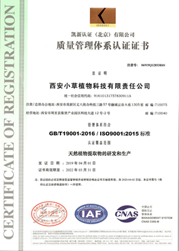 西安市小草植物科技有限責任公司成立于2004年,工廠位于西安市周至縣集賢工業區,辦公室位于西安高新區,一家具有進出口權的技術型民營企業。